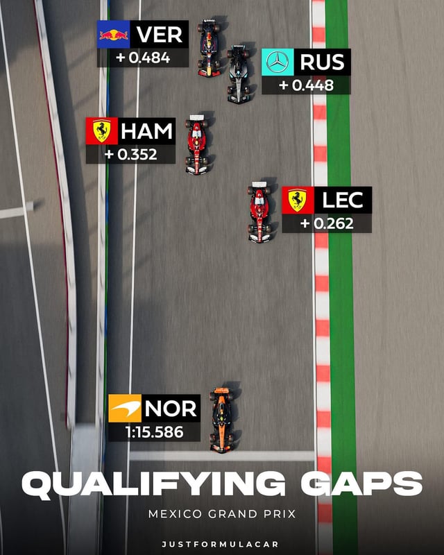| What an amazing qualy! 1:15.586 That’s really spiced up the World Drivers Championship battle! Turn One should be exciting! Lando 1st. Verstappen 5th. Piastri 8th. Just over 1/2 second between 1st and 5th. I love these visualizations because they show just how close the cars are, especially at the end of a rules era. And Ferrari’s right up there, .9 apart. Congratulations Lewis on P3! Well done.    submitted by    /u/Its4MeitSnot4U   |
