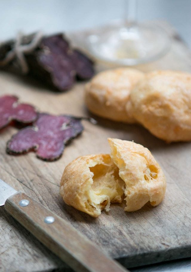 The French do have their version of cheese “balls.” These puffs are lighter-than-air and baked to a crisp. No one can resist nibbling on these, especially if you serve them warm.
